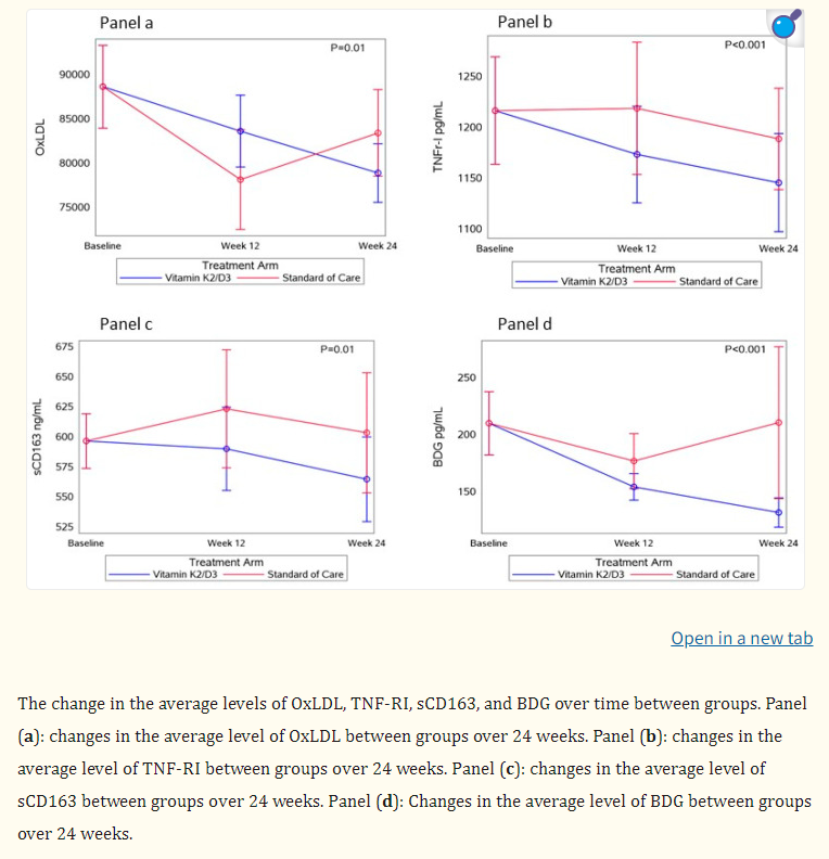Atieh O, Daher J, Durieux JC, Abboud M, Labbato D, Baissary J, Koberssy Z, Ailstock K, Cummings M, Funderburg NT, McComsey GA. Vitamins K2 and D3 Improve Long COVID, Fungal Translocation, and Inflammation: Randomized Controlled Trial. Nutrients. 2025 Jan 16;17(2):304. doi: 10.3390/nu17020304. PMID: 39861434; PMCID: PMC11767688.